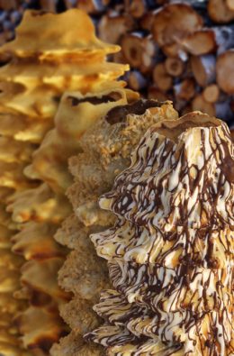 Der Masurische Baumkuchen wird mit größter Sorgfalt und Liebe zum Detail erstellt. Ein heißer Baumkuchen wird nach dem Backen von dem Wallholz entfernt und zum Abkühlen gelassen.